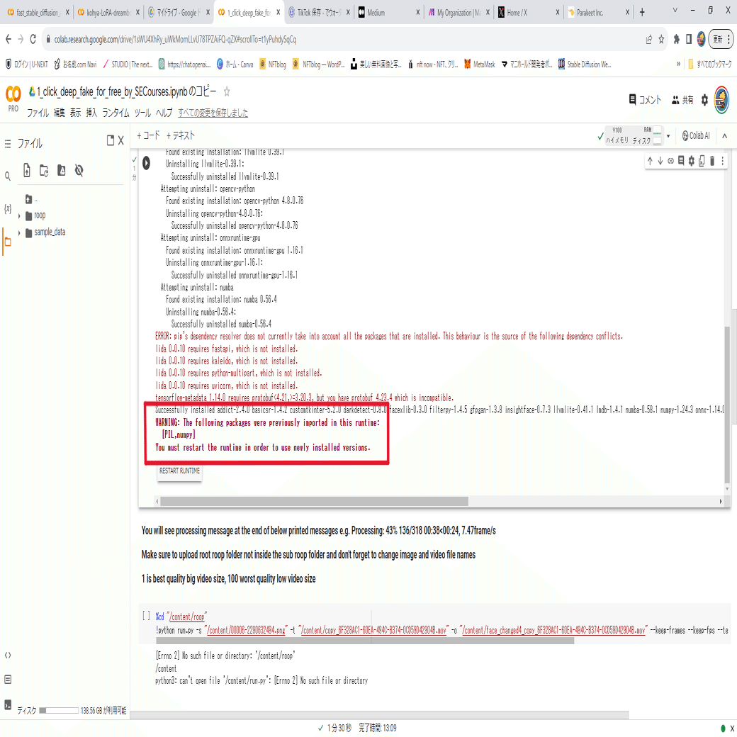 という文字が出てきたらディープフェイク処理完了です!