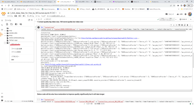 早速、Google Colab を使って、Deepfake動画を作っていきましょう。